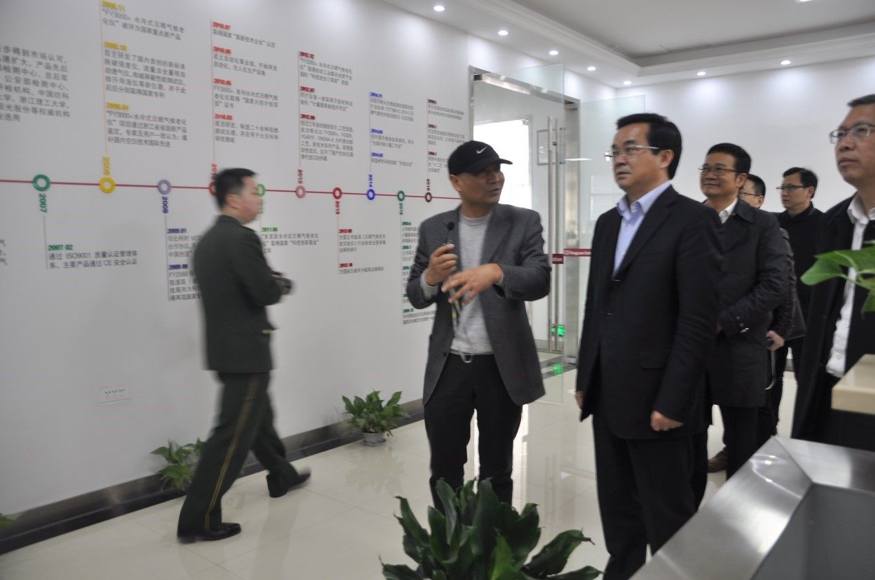 2018年39日,副省長(zhǎng)高興夫赴龍灣調(diào)研小微企業(yè)園區(qū)建設(shè)運(yùn)營(yíng)管理工作時(shí),實(shí)地走訪(fǎng)我公司。副市長(zhǎng)陳建明,區(qū)委副書(shū)記、區(qū)長(zhǎng)周一富隨同調(diào)研。副省長(zhǎng)高興夫等領(lǐng)導(dǎo)在我公司董事長(zhǎng)、總工程師李文霖的陪同下,參觀(guān)了我公司的機(jī)加工車(chē)間、組裝調(diào)試車(chē)間、榮譽(yù)展示廳、樣品展示廳??疾熘?,李文霖董事長(zhǎng)向考察組領(lǐng)導(dǎo)詳細(xì)匯報(bào)溫州方圓儀器有限公司發(fā)展歷史、企業(yè)規(guī)模、管理經(jīng)驗(yàn)、技術(shù)創(chuàng)新、發(fā)展規(guī)劃等。調(diào)研組領(lǐng)導(dǎo)對(duì)我公司取得的成績(jī)給予充分肯定,并囑咐我們要堅(jiān)持走自主創(chuàng)新的道路,加快新產(chǎn)品開(kāi)發(fā)力度,提高市場(chǎng)影響力。